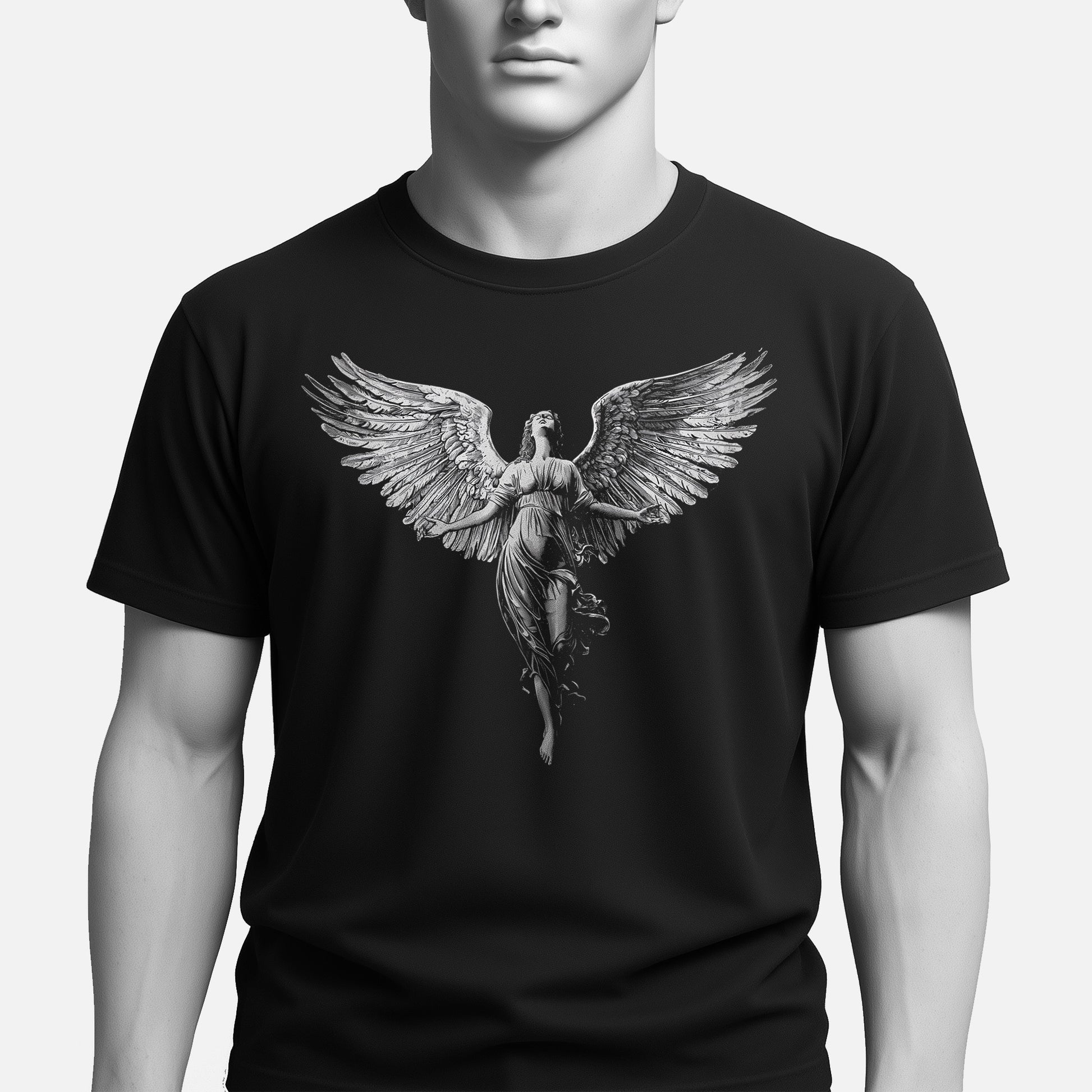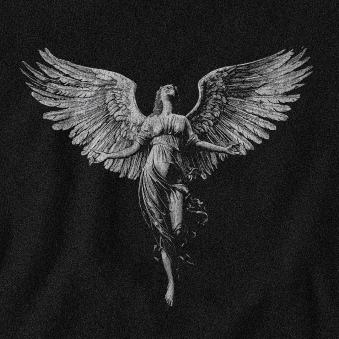This angel doesn’t descend — it ascends through shadow and flame.